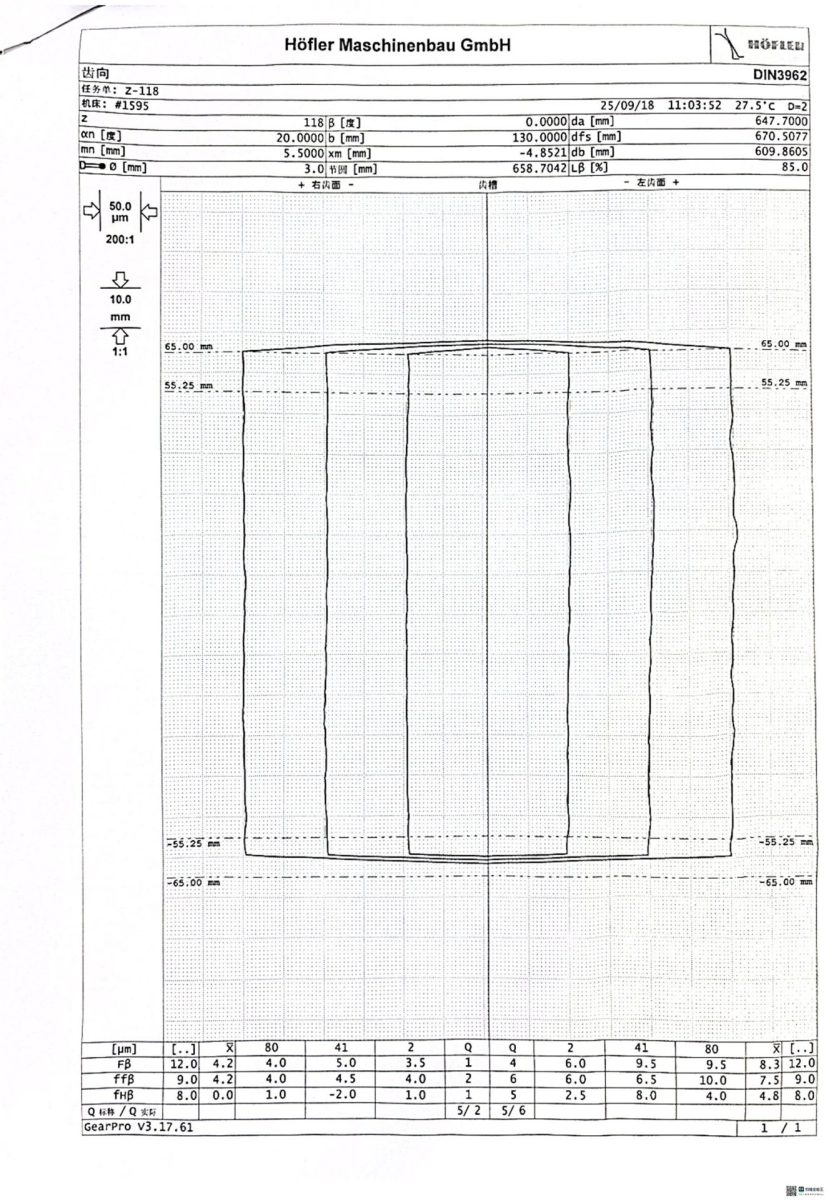 - Reference Standards and Tools: Measurements adhered to the German DIN 3962 standard (recognised within the industry as the definitive ‘gear precision specification’). Data analysis employed the professional GearPro v3.17.61 software, effectively performing a ‘CT scan’ on the gear, yielding highly reliable results.